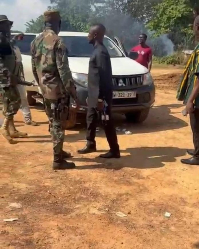 Upon arrival at the Hwidiem Police Station to lodge a report and hand over the suspects and exhibits, a crowd of about six hundred (600) people from Hwidiem and nearby communities surrounded the station. The mob, incited by Hon. Ebenezer Kwaku Addo, demanded the immediate release of the arrested suspects and seized vehicles. They warned that they would “discipline” the soldiers if their demands were ignored.